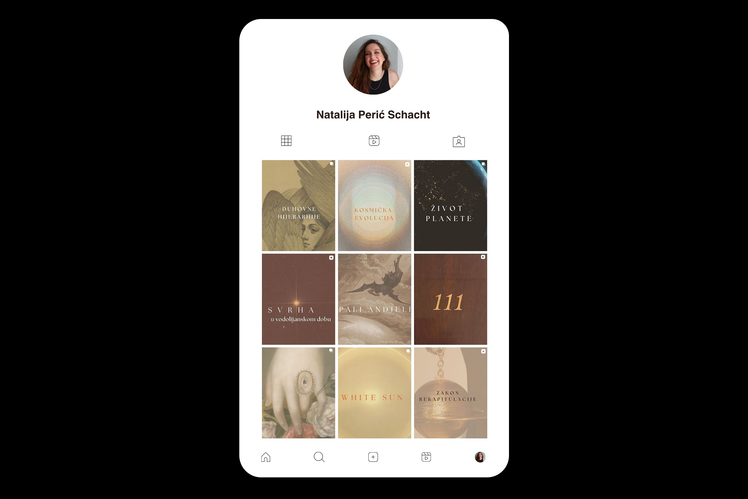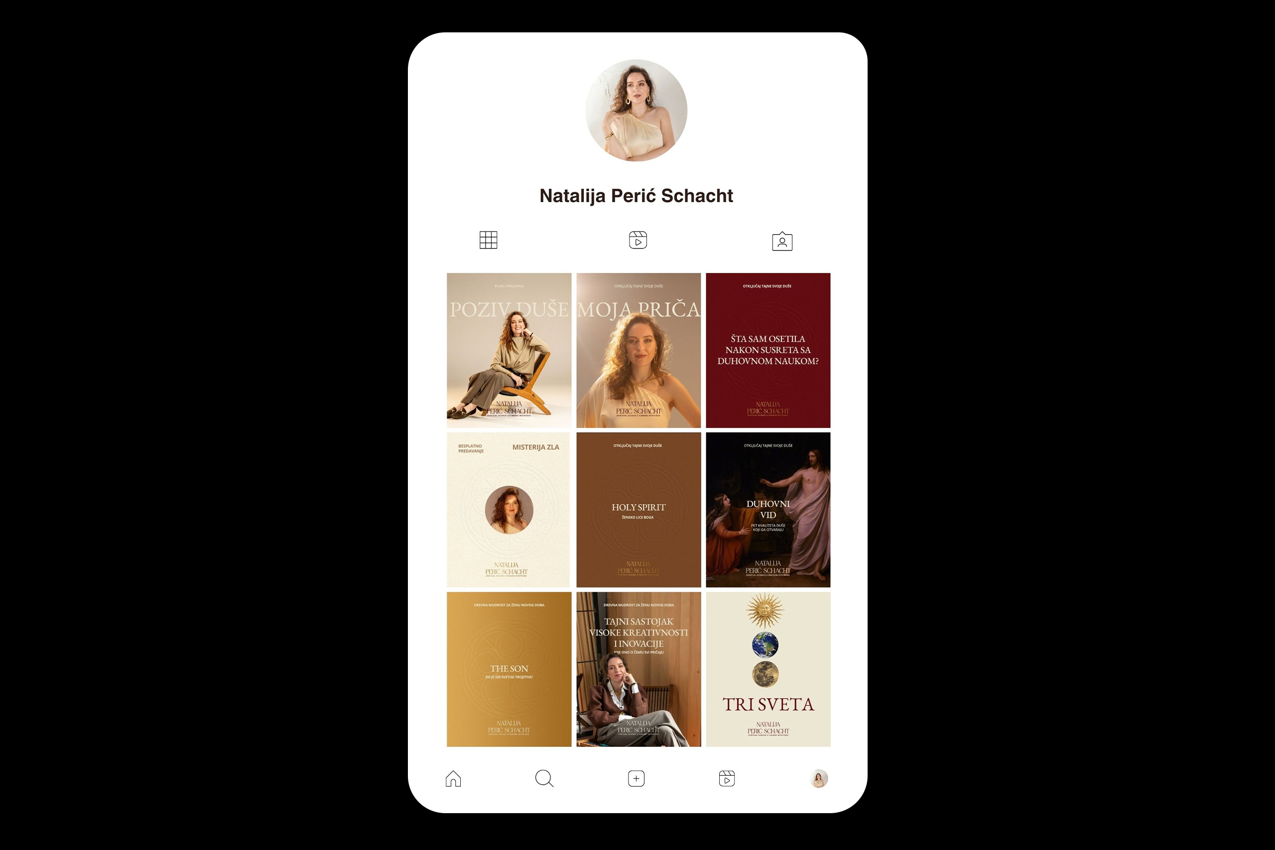 Nataliji je nakon godinu dana rada bilo potrebno da sve podigne na viši i profesionalniji nivo. Prvi korak – brend strategija u okviru mentorske tromesečne saradnje pod nazivom “Lansiraj sa Svrhom” pomogla nam je da uzemljimo Nataliju u njen rad, vrednosti, viziju, i definišemo kome se obraća. Izrada vizuelnog identiteta pod koji spada i izrada šablona za Instagram i Youtube je drugi korak. Izrada je pratila prethodno kreiranu brend strategiju i Natalijinu natalnu kartu (vedska astrologija).