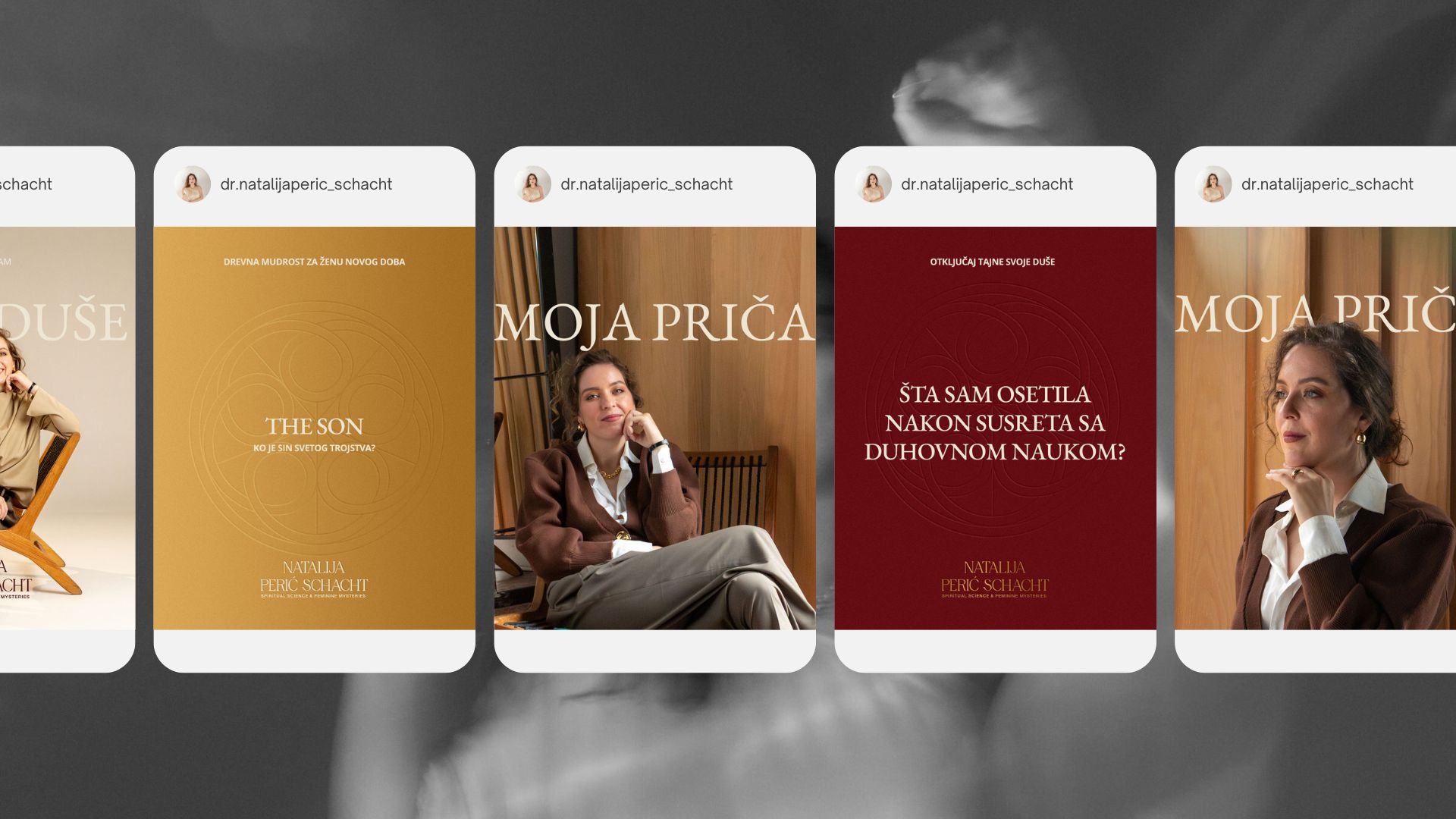 Nataliji je nakon godinu dana rada bilo potrebno da sve podigne na viši i profesionalniji nivo. Prvi korak – brend strategija u okviru mentorske tromesečne saradnje pod nazivom “Lansiraj sa Svrhom” pomogla nam je da uzemljimo Nataliju u njen rad, vrednosti, viziju, i definišemo kome se obraća. Izrada vizuelnog identiteta pod koji spada i izrada šablona za Instagram i Youtube je drugi korak. Izrada je pratila prethodno kreiranu brend strategiju i Natalijinu natalnu kartu (vedska astrologija).