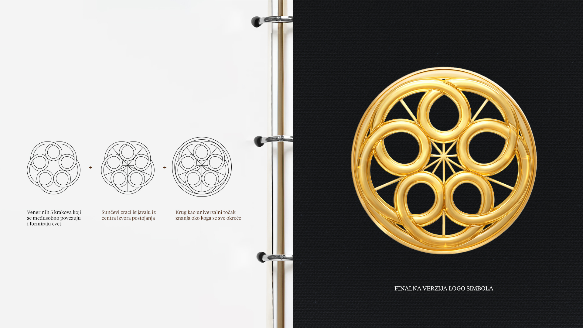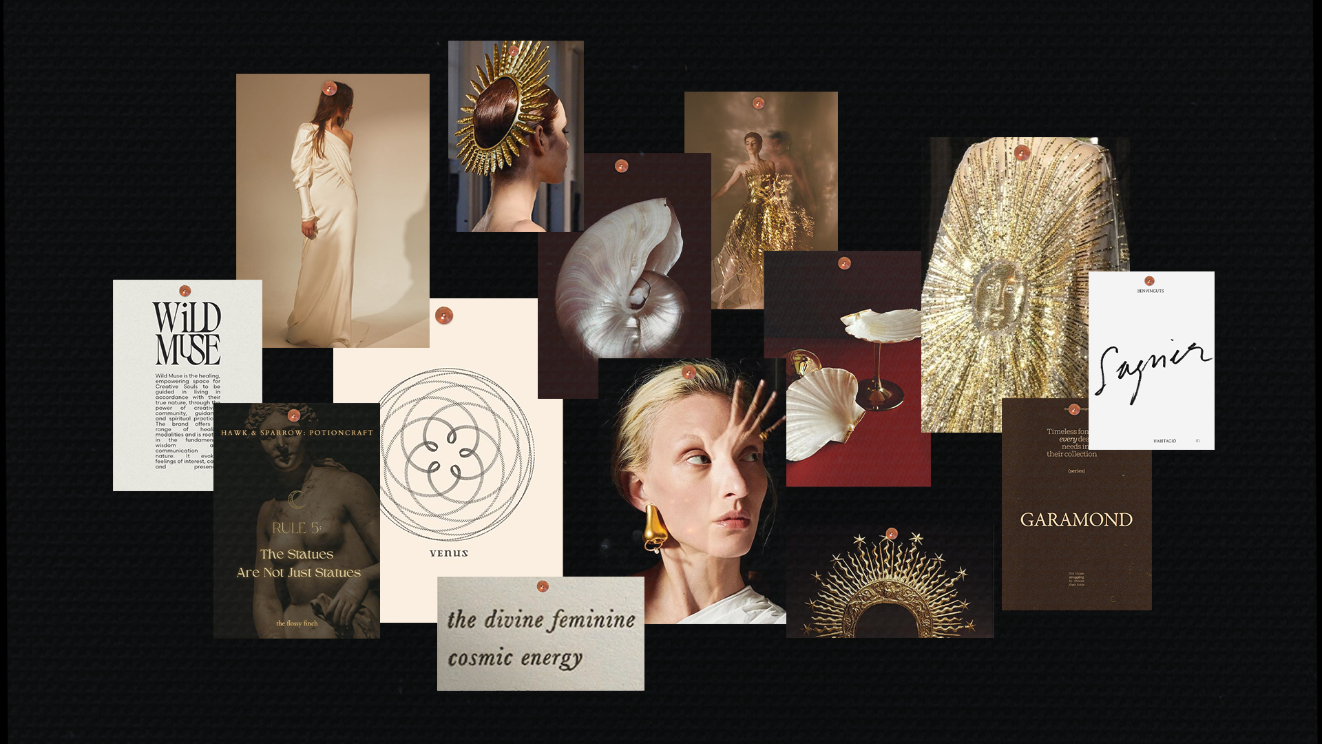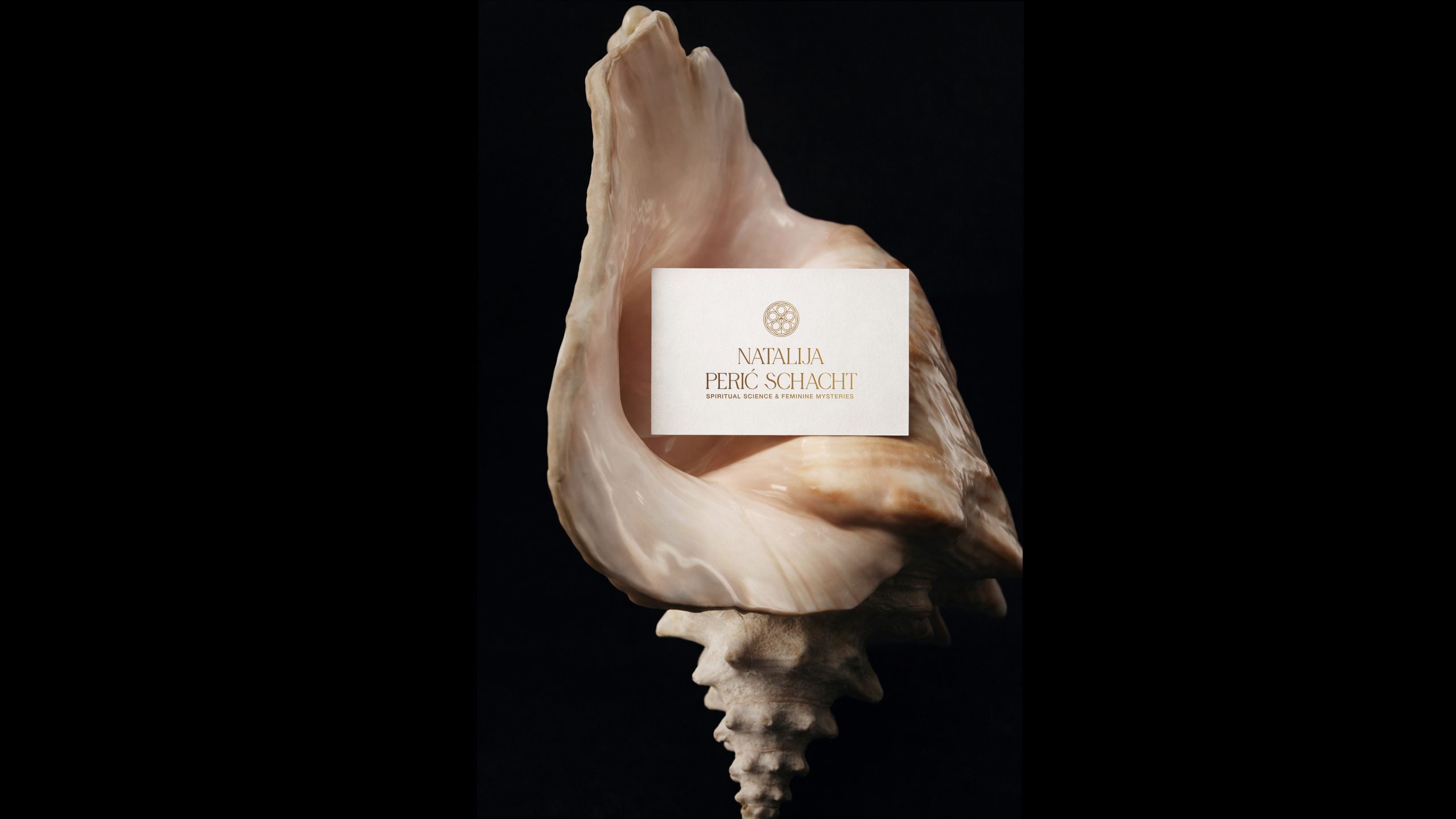 Kroz vizuelni identitet se prožimaju ova dva arhetipa. Mistična, elegantna, moćna, transformativna, uzemljena, kosmička harmonija. Ženska misterija, nežnost i kosmička znanja u paleti boja + fotografiji, elegantni font, balans svetla i tame u senkama, frekvencija zlatne svetlosti. Divine feminine i masculine.